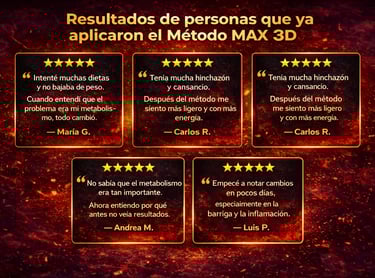 MAX 3D es una guía completa paso a paso diseñada para acelerar el metabolismo, desinflamar el cuerpo y activar la quema de grasa de forma natural.